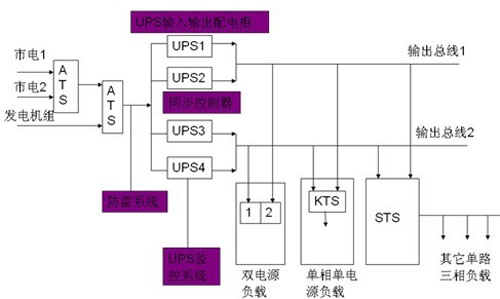 鑒于現(xiàn)在通信網(wǎng)絡(luò)機(jī)房?jī)?nèi)的絕大多數(shù)IT設(shè)備,比如服務(wù)器、路由器、交換機(jī)、光端機(jī)、網(wǎng)關(guān)、磁盤(pán)陣列機(jī)和通信設(shè)備等,所允許的瞬間供電中斷時(shí)間僅為0.01-0.02秒左右。這就意味著: 對(duì)于關(guān)鍵性的通信負(fù)載系統(tǒng)而言,在運(yùn)行中如果出現(xiàn)0.02秒以上“瞬間供電中斷”的故障時(shí),就會(huì)造成“網(wǎng)絡(luò)癱瘓”事故發(fā)生。一旦網(wǎng)絡(luò)癱瘓后, 要想讓整個(gè)網(wǎng)絡(luò)重新恢復(fù)正常工作往往需耗時(shí)幾十分鐘--幾小時(shí)。顯而易見(jiàn),由此會(huì)給用戶帶來(lái)巨大的經(jīng)濟(jì)損失。基于上述原因,我們必須考慮消除可能出現(xiàn)在UPS輸出供電系統(tǒng)中的”單點(diǎn)瓶頸”故障隱患,確保對(duì)這些關(guān)鍵性IT負(fù)載設(shè)備供電的連續(xù)性。