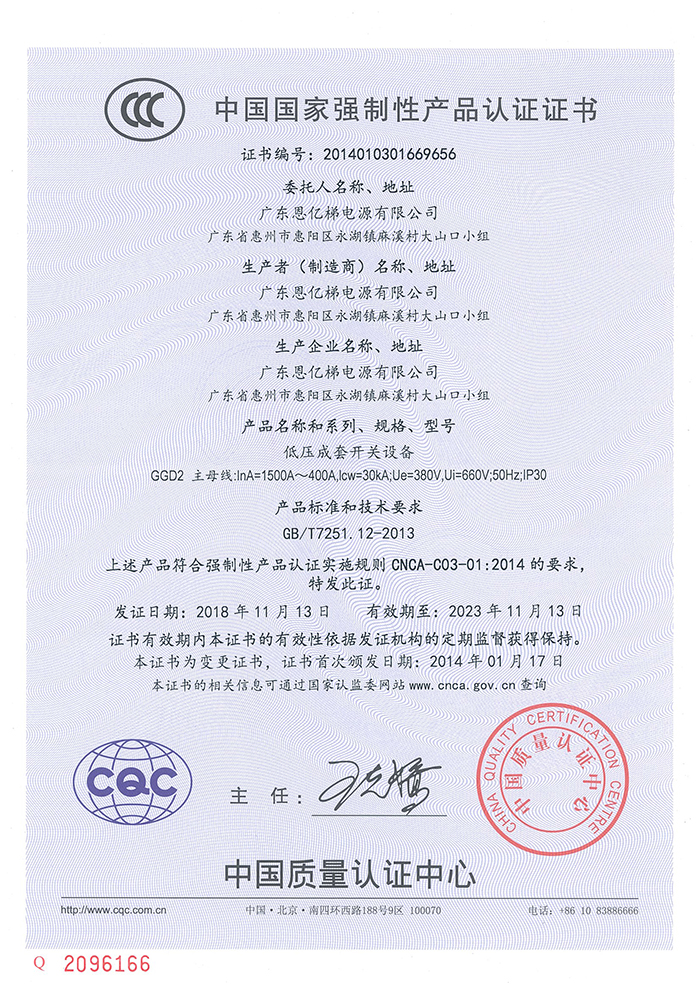 中國國家強制性產品認證(低壓成套開關設備)